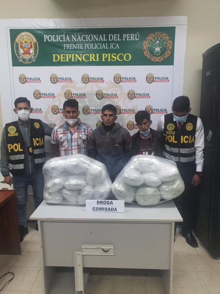 Posteriormente, fueron trasladados a las instalaciones de la AREINCRI de Pisco para continuar con las investigaciones de ley, según dispuso la representante de la Segunda Fiscalía Provincial Penal Corporativa de Pisco, además trasladaron el vehículo incautado y droga decomisada.