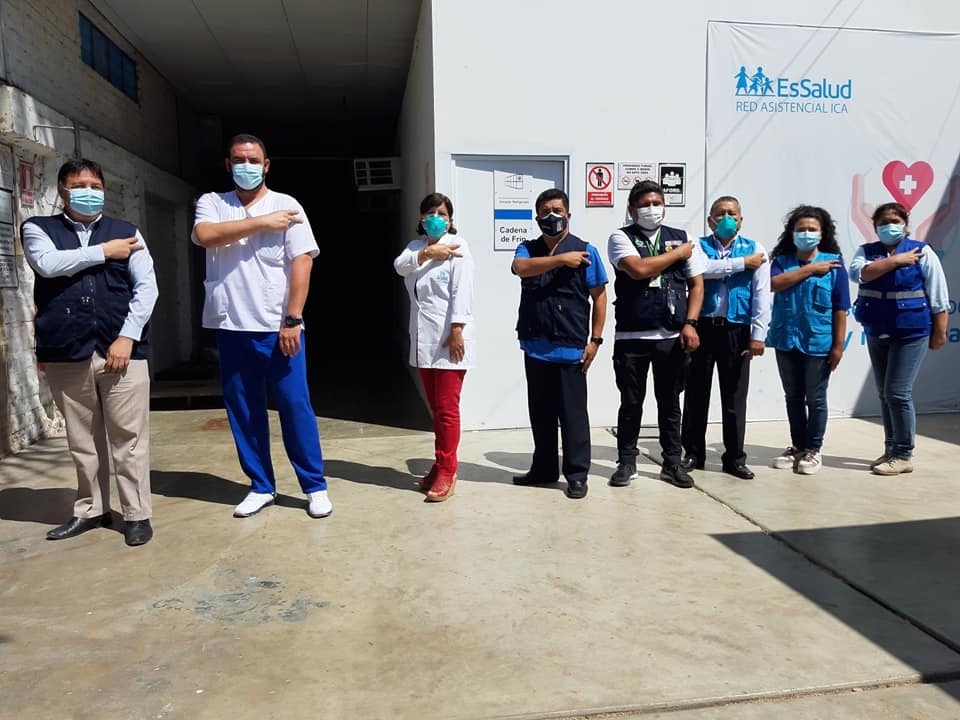 El proceso de vacunación en Ica iniciará desde este jueves 29 de abril, según informó el hospital regional mediante sus redes sociales. Una vez que estas dosis llegaron a suelo de Ica fueron trasladadas al almacén de EsSalud donde se encuentra la ultra congeladora, que permitirá almacenarlas a una temperatura menor a 80 °C.