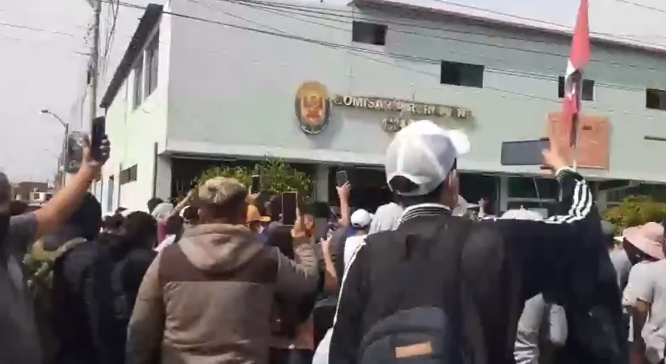 En paralelo, un numeroso grupo de personas también se acercó al frontis de la comisaría de Chao, exigiendo que los policías respeten sus derechos como manifestantes.