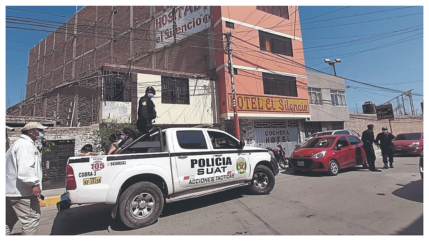 Durante el operativo, las efectivos hallaron al menos 15 parejas en el interior del hospedaje El Silencio, ubicado en la cuadra 1 de la calle Yahuarhuaca, en el distrito chiclayano de La Victoria.