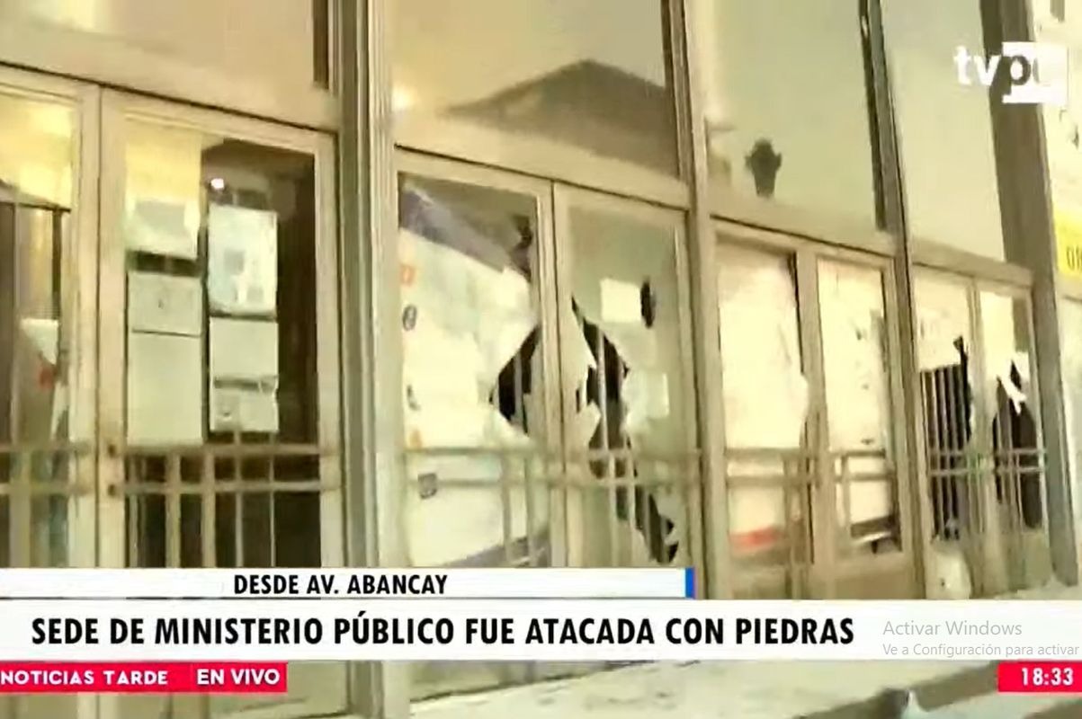 En las imágenes televisivas se muestra que las ventanas y puertas de vidrio del frontis terminaron rotas tras ser impactadas por los objetos y las piedras que lanzaron los manifestantes en su retirada ante el avance de la Policía Nacional. Minutos después llegó el ministro del Interior, Alfonso Chávarry, al local de la Fiscalía para constatar los daños.