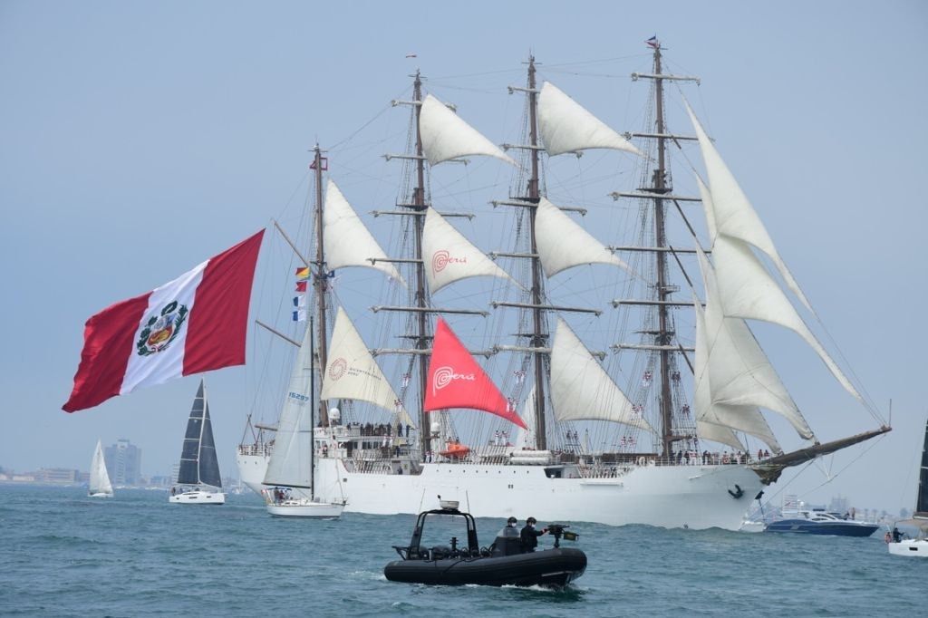 El buque escuela a vela B.A.P. “Unión”, a su paso por la bahía del Callao, fue acompañado por un desfile náutico con gente de mar a modo de despedida a los miembros de la tripulación que viajan cumpliendo todas las medidas de bioseguridad exigidas para evitar complicaciones a bordo debido a la pandemia del COVID-19.