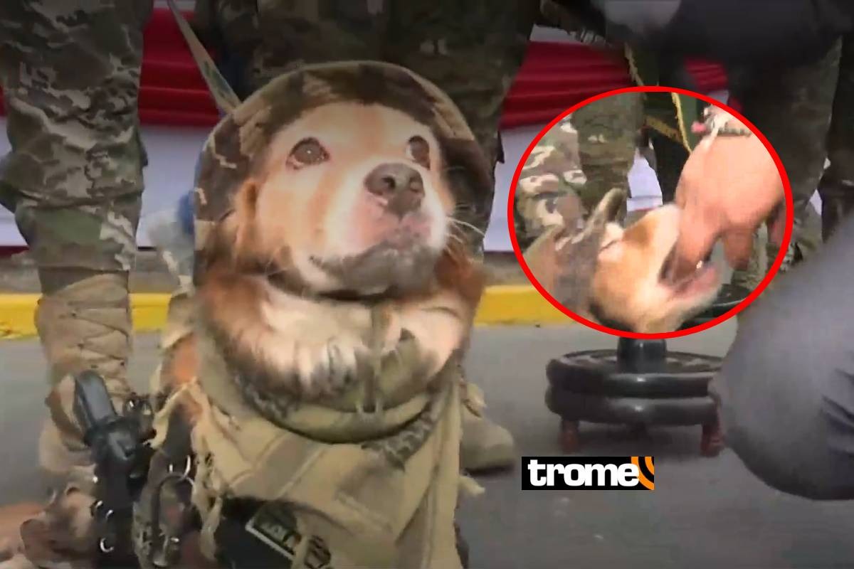 El canino en cuestión, conocido como “Chato”, de 8 años, desfilaba junto a sus entrenadores. En así como el periodista se acercó para conocer más sobre el animal y sus implementos de trabajo.