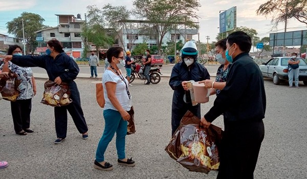 Los familiares de los pacientes con coronavirus, quienes acampan y permanecen en las afueras de los hospitales de la región Piura, recibieron una inesperada sorpresa momentos antes de celebrarse la navidad, la noche del 24 de diciembre. Cáritas Arquidiocesana elaboró una chocolatada y la repartió con las personas que pernoctan en la calle a la espera de noticias alentadoras de sus seres queridos.