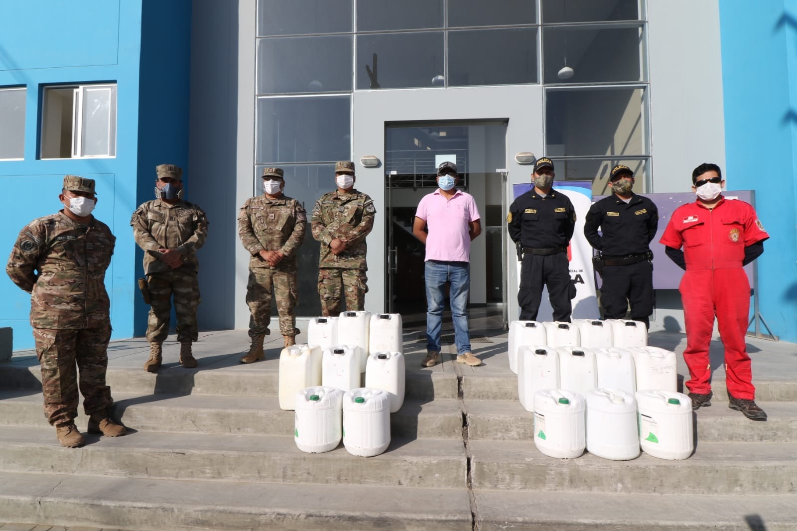 Para asegurar la desinfección entre los uniformados por el mortal COVID-19, la Municipalidad Provincial de Piura entregó 540 litros de alcohol a los integrantes de las Fuerzas Armadas, Policía Nacional del Perú y a la Compañía de Bomberos de la región.