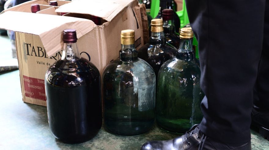 Los intervenidos utilizaban etiquetas de conocidas marcas de vinos para cometer el ilícito penal.