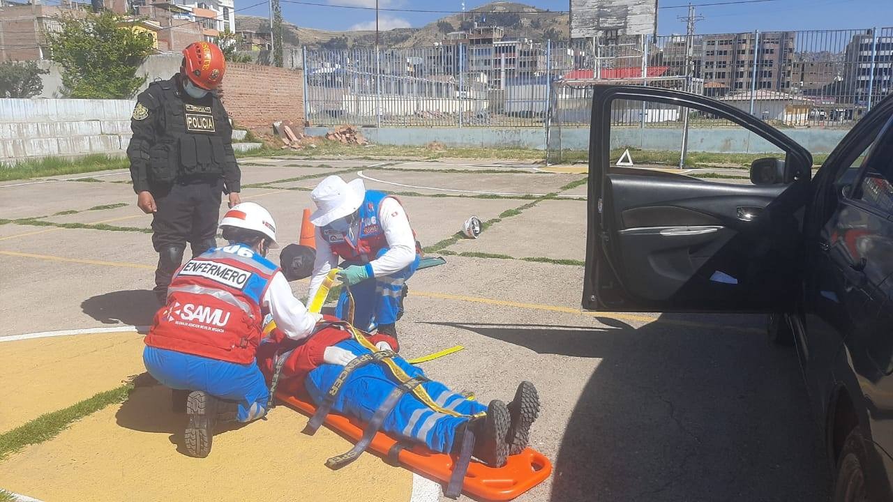 Cuatro efectivos de la Policía Nacional del Perú pertenecientes a la Unidad de emergencias de Puno recibieron una capacitación para rescatar a pacientes con poli traumatismos que necesiten de una ayuda urgente durante la época de pandemia por el coronavirus.