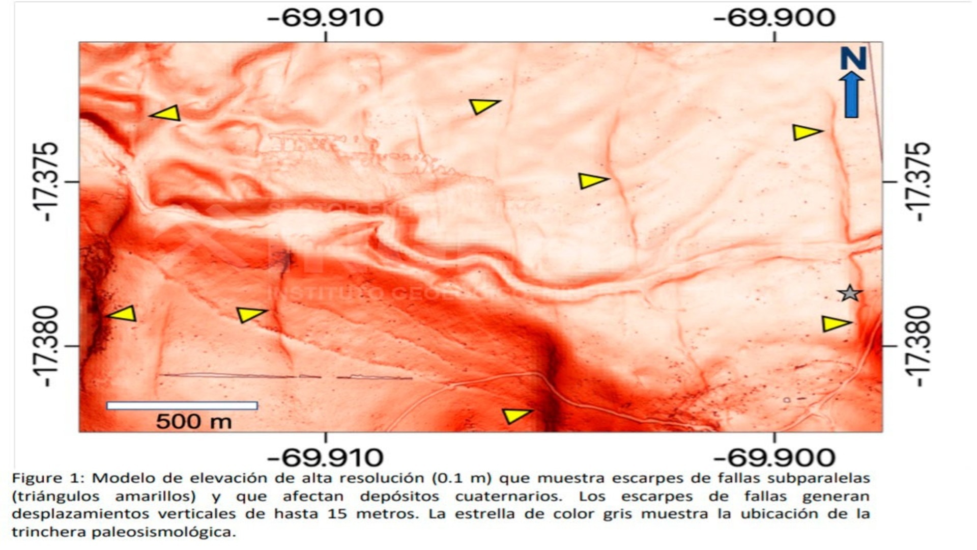 Asimismo, el análisis geológico con las dataciones de radiocarbono (14C) sugieren que esta falla generó sismos mayores de 6 grados (Mw>6) en los últimos 10 mil años.