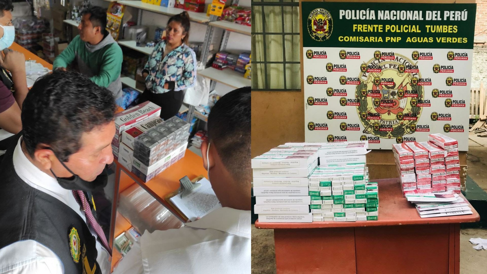 Golpe al contrabando. Los operativos que realizan efectivos de la Policía Nacional en Tumbes y Piura permitieron descubrir e incautar miles de cigarrillos paraguayos que ingresaron de contrabando a nuestro país y que tenían como destino Ecuador.