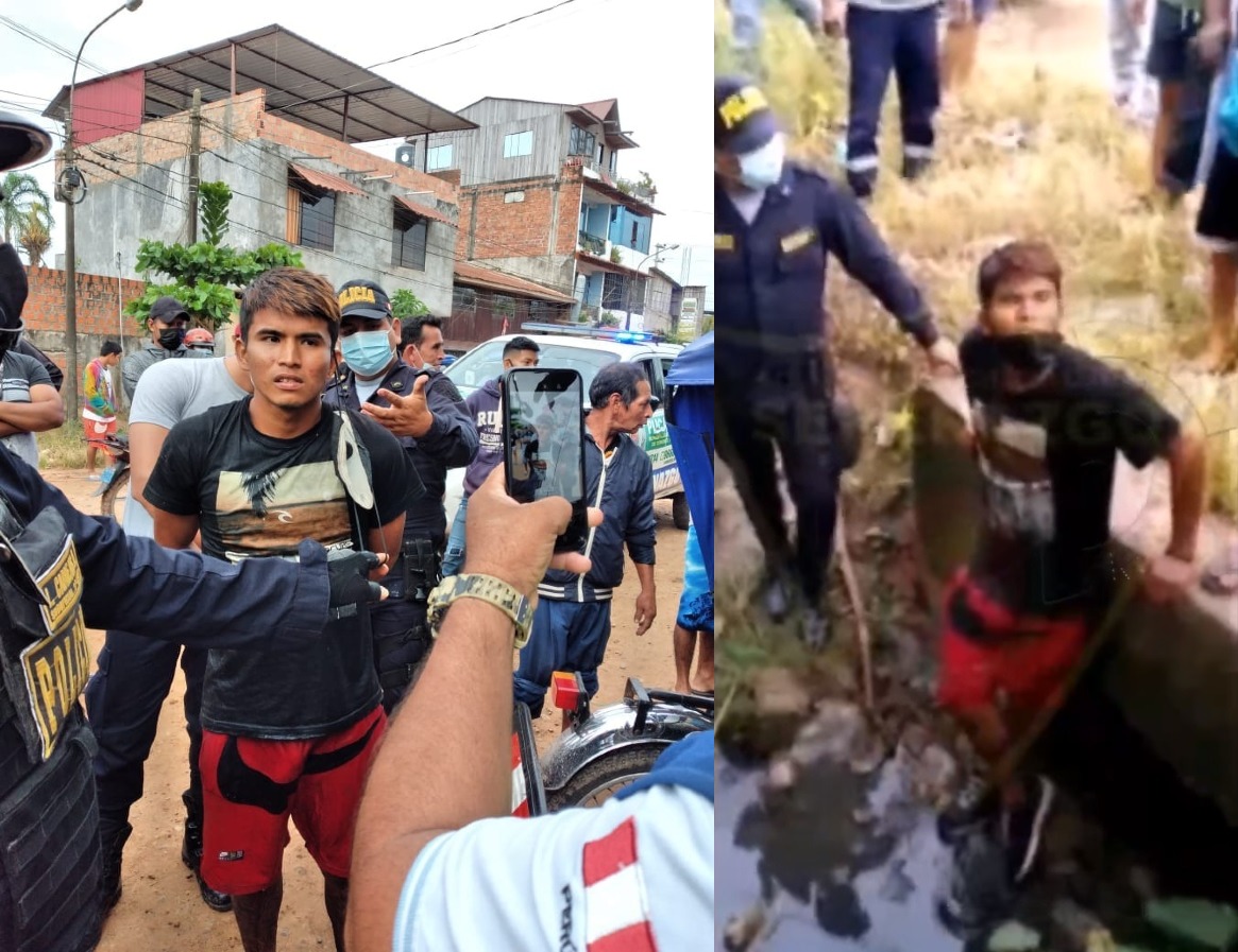 Una pareja de esposos que se desplazaban en una motocicleta lineal para comprar en un mercado de la ciudad de Pucallpa, provincia de Coronel Portillo (Ucayali), fueron interceptados por dos presuntos delincuente a bordo de un vehículo trimovil, quienes les arrebataron una cartera con una considerable suma de dinero; sin embargo, en su huida, uno de ellos no logró escapar y se escondió en una alcantarilla.