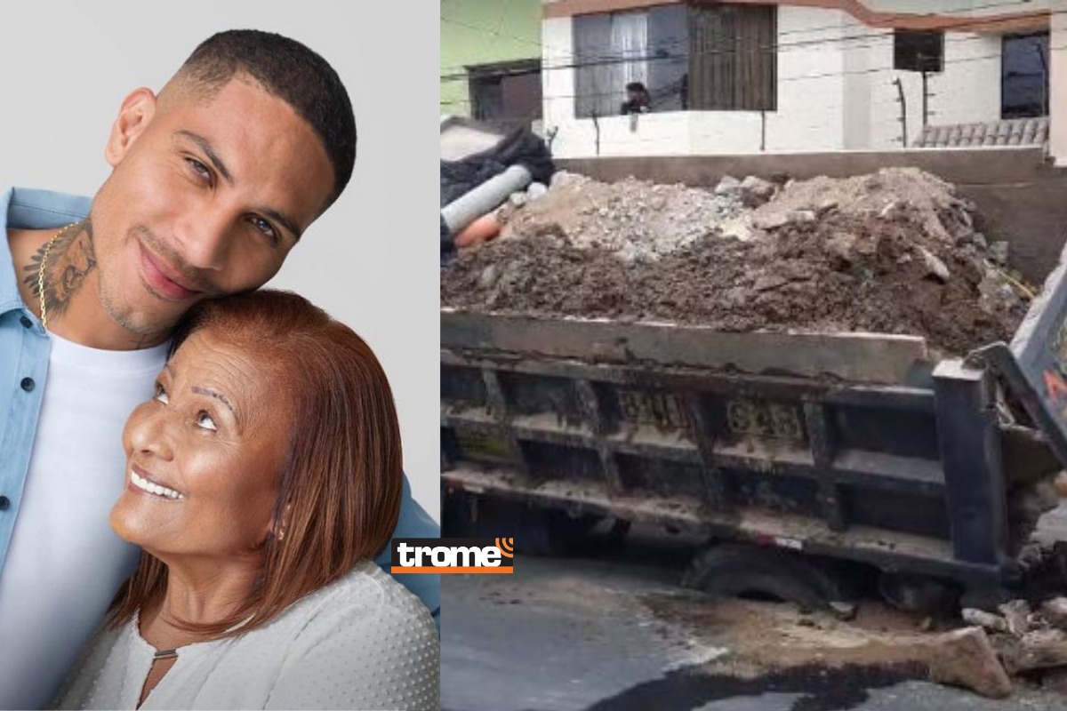TERMINÓ HUNDIDO E INCLINADO. Un camión que transportaba desmonte terminó completamente hundido en plena pista en la urbanización Matelinni en Chorrillos. Lo curioso del incidente es que tuvo lugar a pocos metros de la casa de doña Peta, madre de Paolo Guerrero.