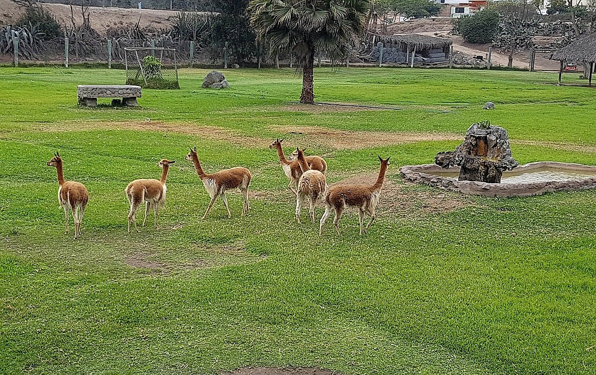 En el Parque de las Leyendas hay en total ocho ejemplares, los cuales son alimentados con heno de alfalfa, concentrado y forraje verde. Son los camélidos más pequeños de Sudamérica, a comparación de las llamas, las alpacas y los guanacos.