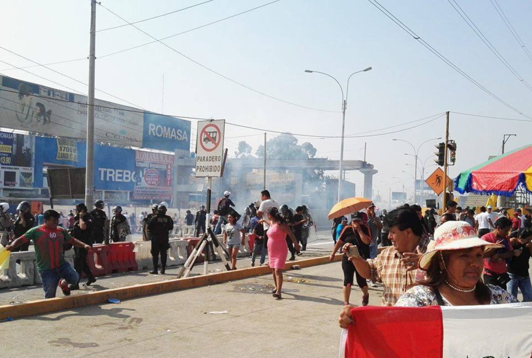 La situación es tensa en el tramo de la Panamericana Norte cercano al peaje de Puente Piedra. Pese a que la Policía Nacional controló en un primer momento a los revoltosos, estos volvieron a bloquear la vía y a enfrentarse con ellos con piedras y pirotécnicos.