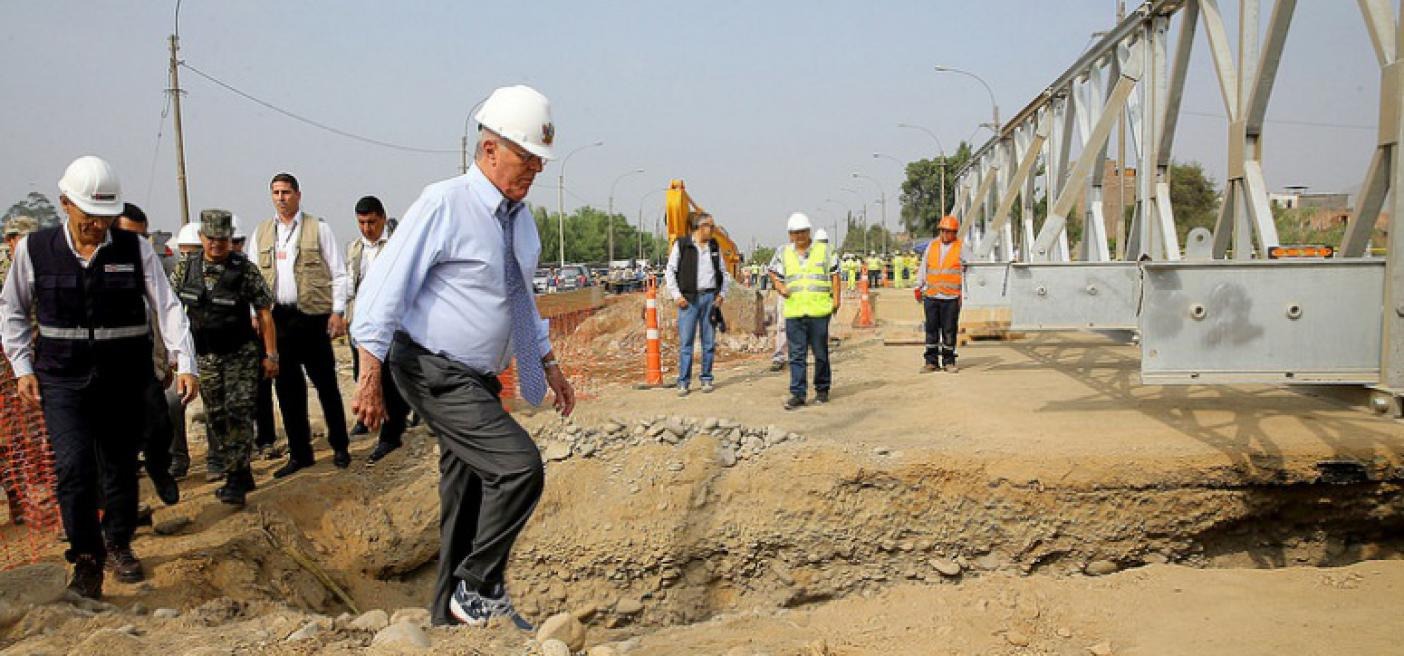 El presidente Pedro Pablo Kuczynski viene inspeccionando los daños provocado por la crecida del río Huaycoloro, junto al ministro de Transportes y Comunicaciones, Martín Vizcarra.