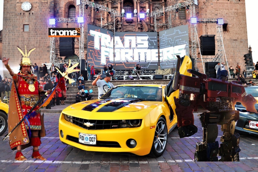 En la Plaza Mayor de Cusco, se congregaron cientos de personas y buscaron tomarse fotos con el Optimus Prime, la combi Volkswagen que participó en el rodaje, Bumblebee, Mirage, Pablo y Scorch.