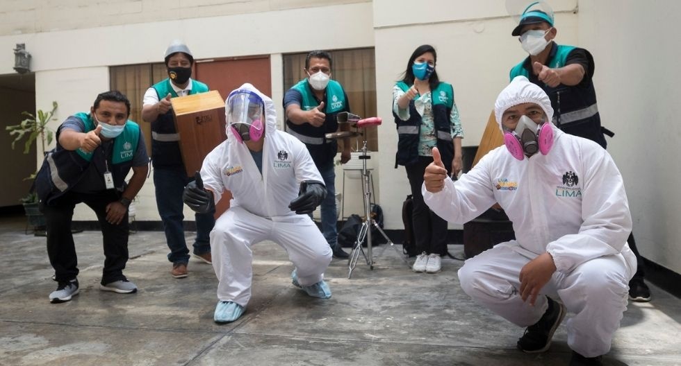 Es así que, con sus trajes y pesadas mochilas de desinfección, van a los multifamiliares, condominios y solares del Cercado de Lima a eliminar el virus de las superficies. Y para no perder la chispa que los caracteriza, mientras un grupo hace la limpieza, otro va tocando un tema musical para animar a los vecinos en esta dura situación que nos está tocando vivir.