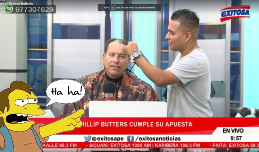 Y es que Butters le apostó a Nicolás Lúcar que Perú perdía ante Uruguay. ¿Pero y si ganaba Perú qué pasaba? Pues, el controvertido conductor radial se iba a rapar el pelo. Y así fue.