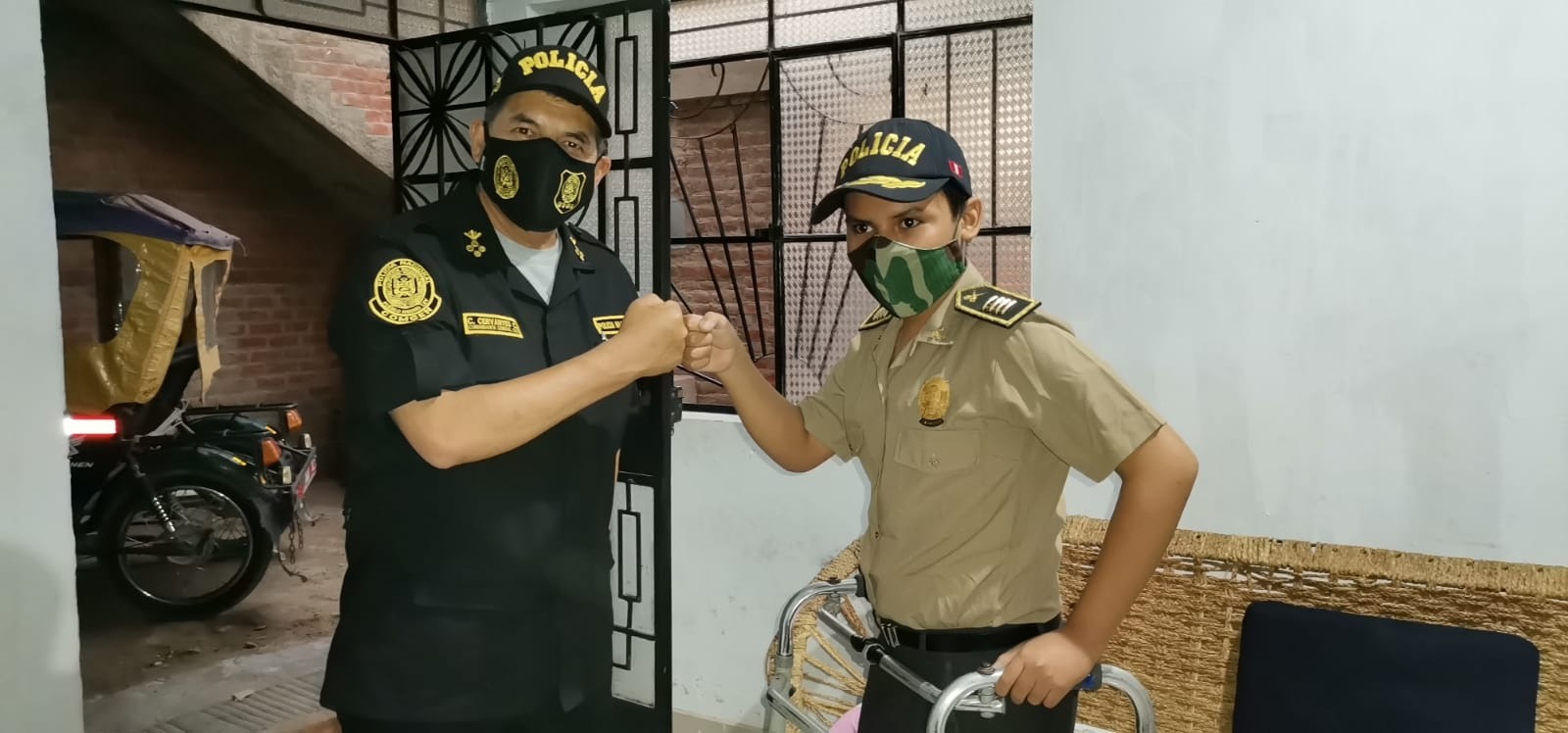 En esa oportunidad, el general, le llevó al menor un uniforme de la PNP de su talla, lo vistió y lo llevó a patrullar las calles de la ciudad cumpliendo así su sueño.