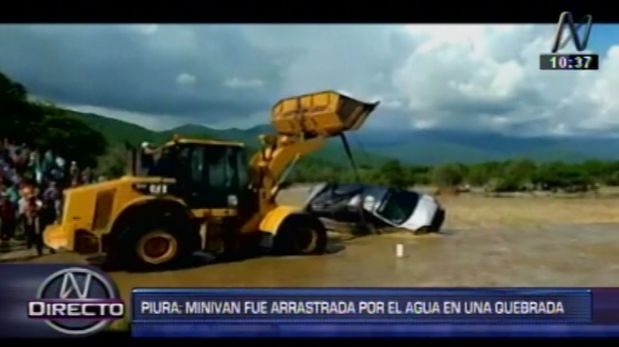 Una minivan con unas 18 personas a bordo fue arrastrada por el río Serrán, en Piura, luego de que el chofer del vehículo intentara cruzar la quebrada.