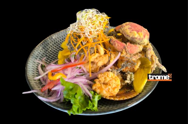 JALEA CELESTIAL: La combinación de los alimentos que provee el mar y que llegan a nuestras mesas a través del trabajo de los pescadores, se convierte en una jalea mixta que tiene filete de pescado, pulpo, concha de abanico, cangrejo y calamar, con la sazón de los chefs de la cebichería María Pastor, en Jesús María y en Surquillo.
