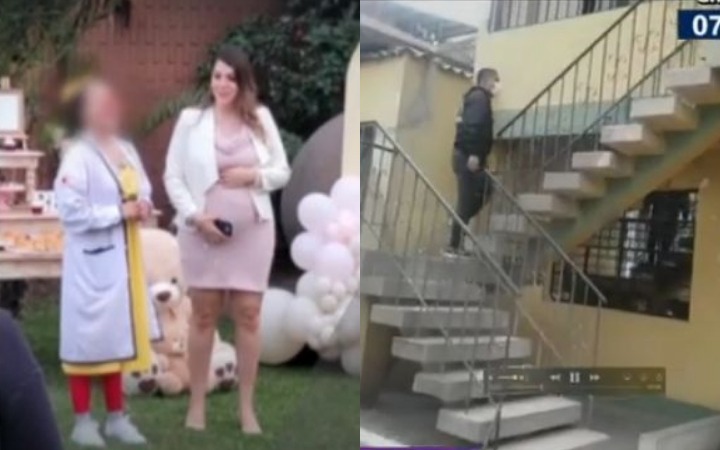 En las imágenes difundidas por el programa “Al Día” de ATV muestra cuando dos policías suben al segundo piso del inmueble de tres niveles que está situado al lado de un negocio de lavado de autos.