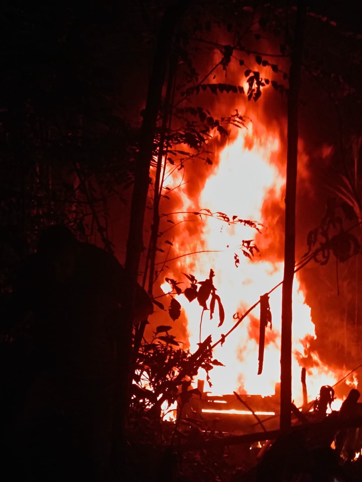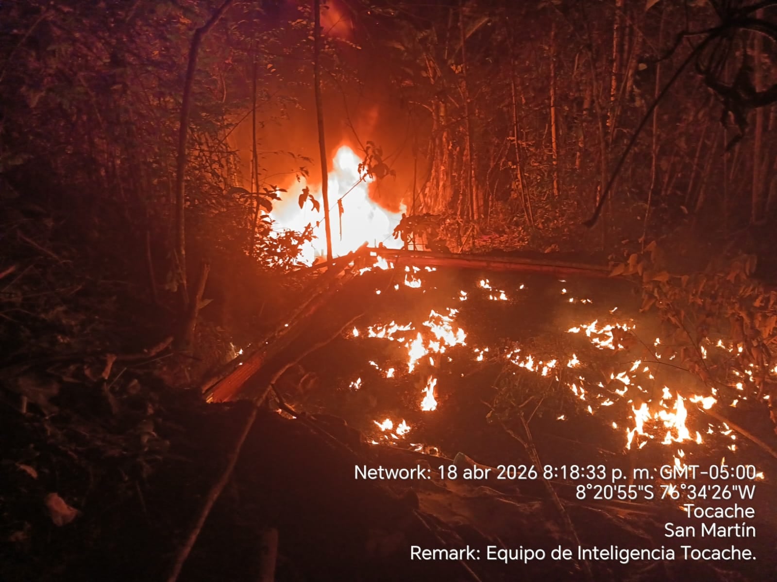 Tras las diligencias realizadas por personal de la comisaría de Uchiza se procedió a la incineración de lo hallado.