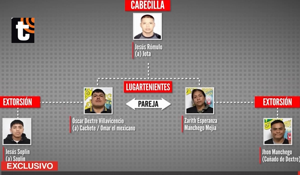 La estructura de ‘Los Mexicanos’ tiene niveles definidos. Debajo de ‘Jota’ figura Óscar Dextre Villavicencio, alias ‘Cachete’, quien cumplía el rol operativo y de enlace, además de coordinar acciones y reclutar ejecutores.