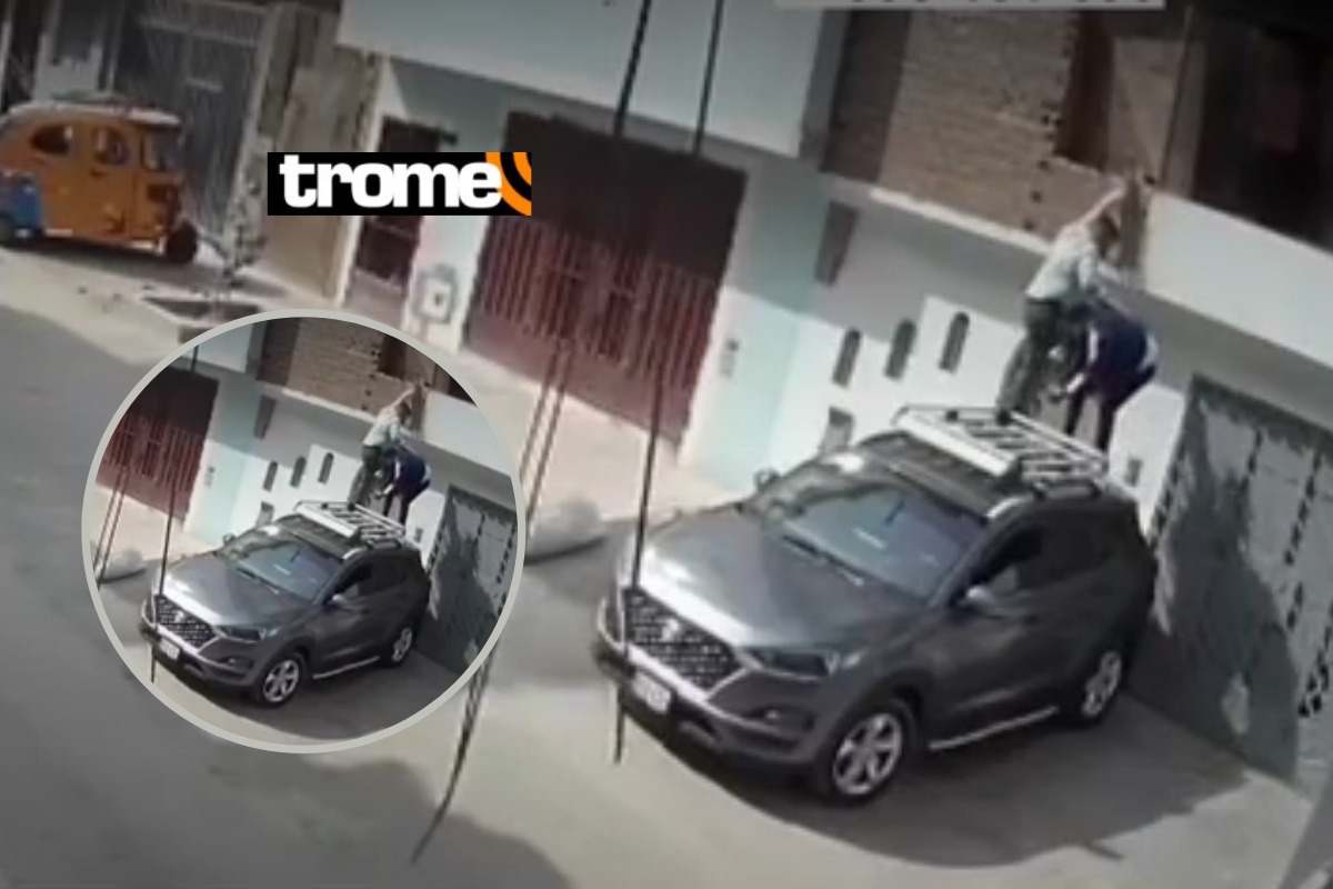 Seguido a esto, dos hombres descendieron del vehículo y subieron al techo de la camioneta para utilizarla como una improvisada escalera que les permitiera acceder a la casa.