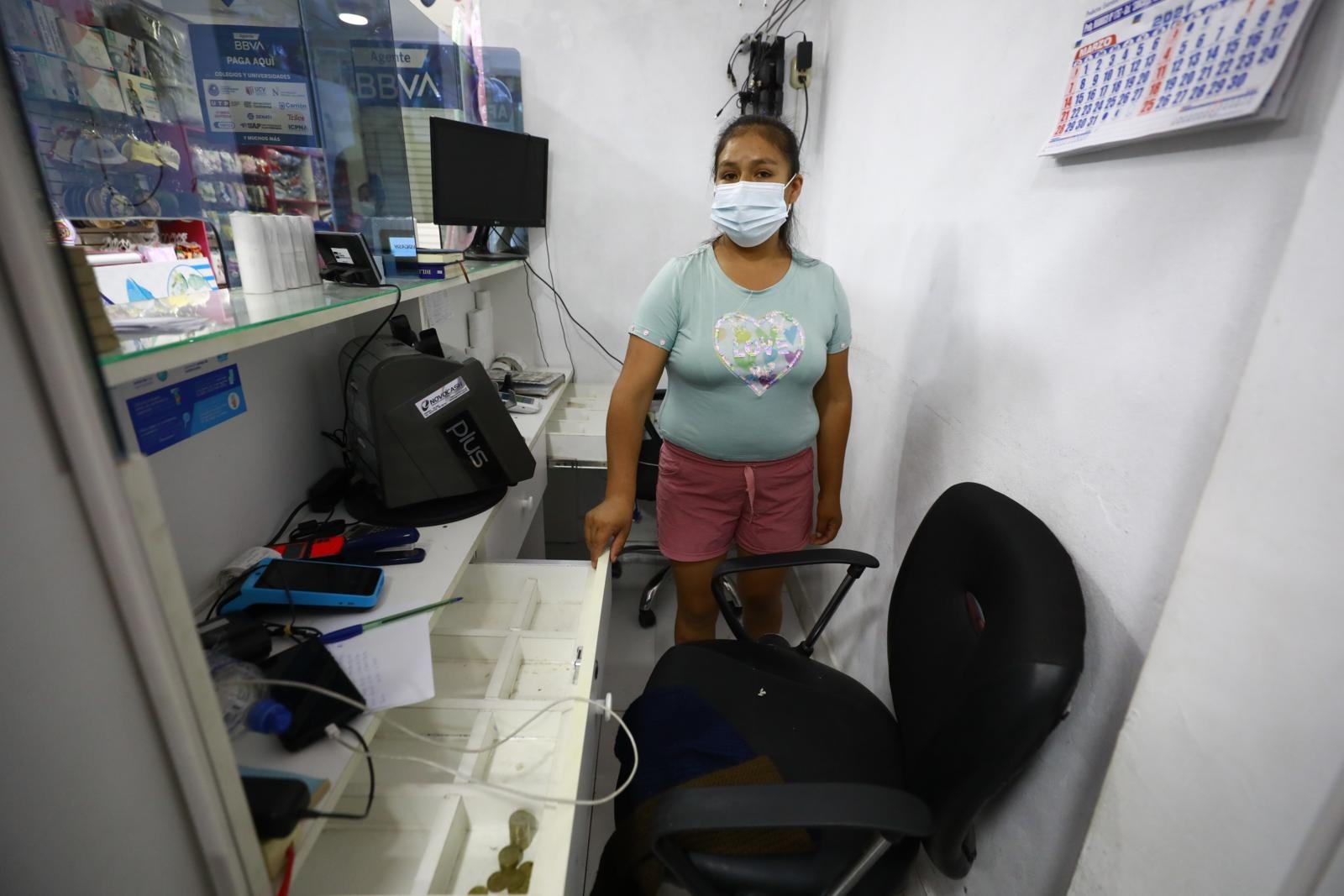 “Han roto tres candados de la puerta enrollable que da a la calle, luego la chapa de la segunda puerta. Apenas entraron se dirigieron al agente, sacaron el dinero que había en la caja, solo dejaron sencillo, unas cuantas monedas. También se llevaron dos mil soles más que eran las ganancias de mi negocio”, contó la propietaria Hermelinda Quispe.