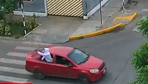 El ataque fue captado por las cámaras de seguridad y se puede ver cómo el hombre saca el cuerpo del auto, para luego disparar a diestra y siniestra.