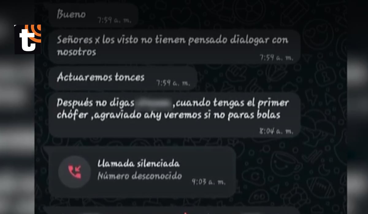 Los mensajes intimidatorios fueron enviados a través de WhatsApp desde el número 919122425 y contenían advertencias explícitas. “Acá las cosas son prácticas: plata o plomo”, se lee en una de las comunicaciones recibidas por los trabajadores de la empresa de transportes Miguel Grau.