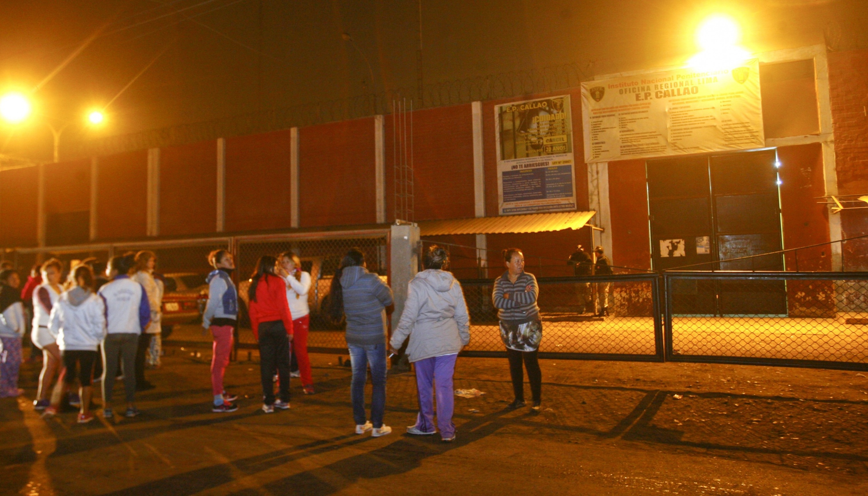 Los familiares de los reos del penal de Sarita Colonia protestan en los exteriores del centro penitenciario debido a que la policía no da razón de sus familiares y temen que haya víctimas, pues, según indicaron, se han escuchado balazos.