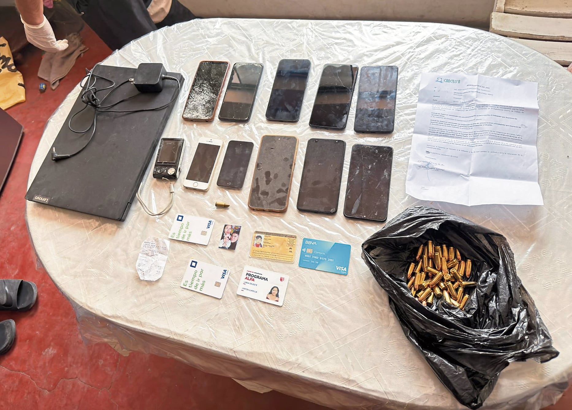 “Ya sabes en qué estás”, le dijo un investigador apuntándole con su pistola. Tenía ocho celulares, una laptop, 51 balas, un voucher del pago de un agraviado y dos tarjetas bancarias.