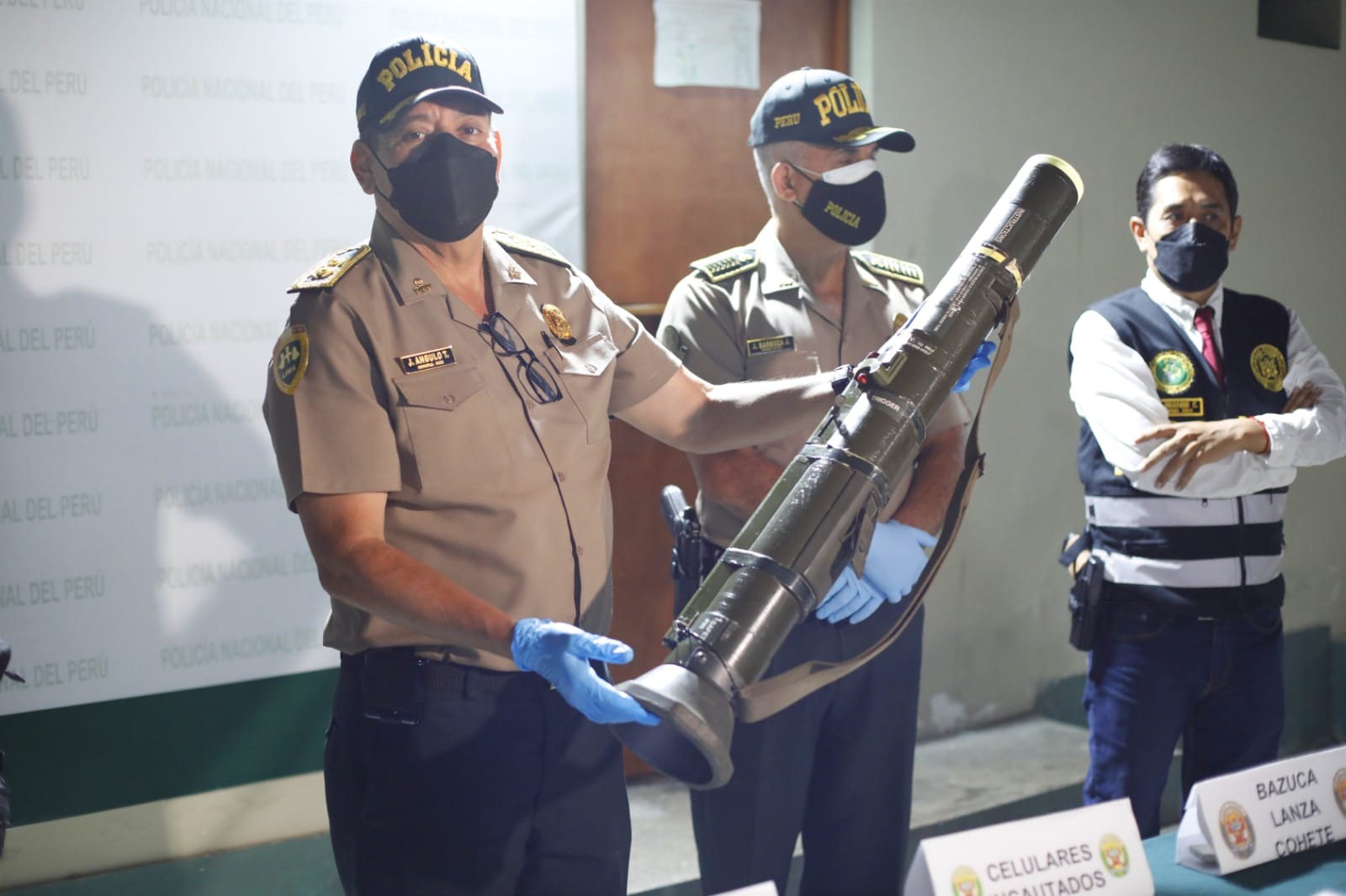 “Se ha intervenido dos vehículos. En uno de ellos que utilizan para ‘marcaje’ o para observar el área donde van a operar, es donde se ha hallado en la maletera dicho armamento. Uno de ellos está confeso e hizo conocer que iban a cometer un golpe en dicho banco. Nos preocupa que este tipo de armamento está en manos de sujetos que están monitoreados por la justicia”, informó el general PNP Jorge Angulo, jefe de la Región Policial Lima.