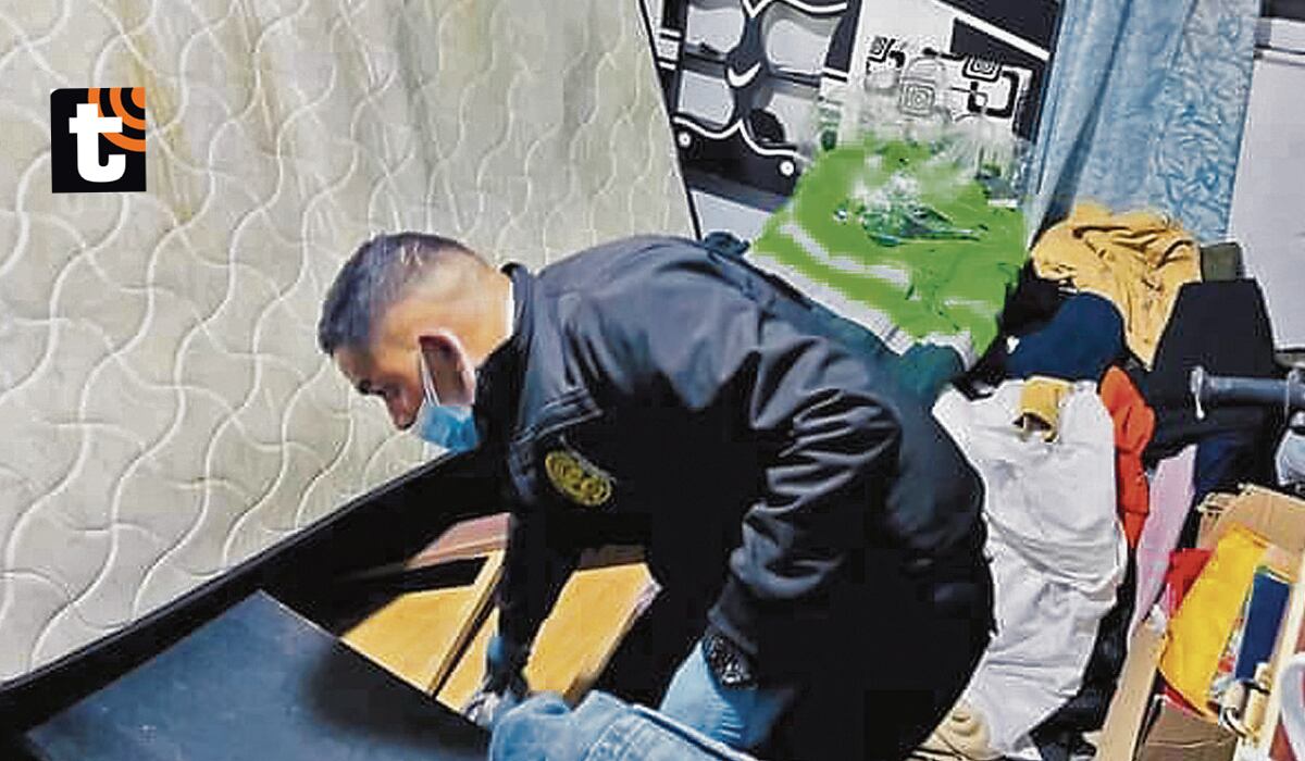 Anoche peritos de Criminalística realizaron la prueba de luminol en todos los ambientes del departamento del asesino para hallar manchas de sangre.