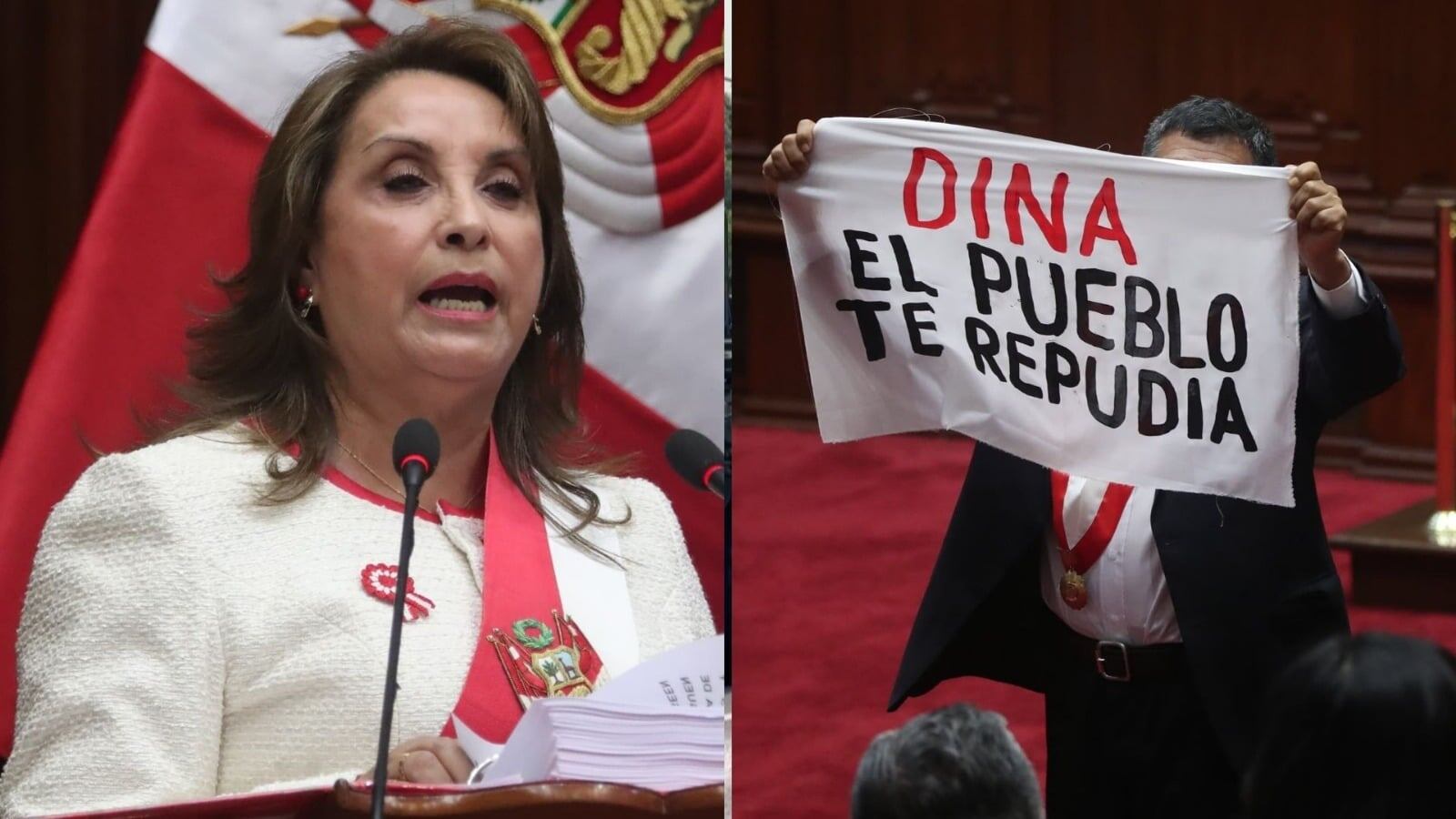 Las cámaras enfocaron a Roberto Sánchez, quien portaba el cartel “Presidente Castillo libertad”, lo que provocó que Dina Boluarte se ría. Aunque no respondió de manera directa, se puede ver cómo la mandataria sonríe en medio de las protestas de los legisladores.