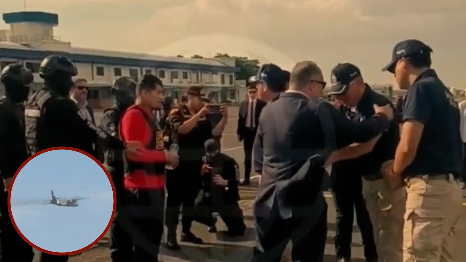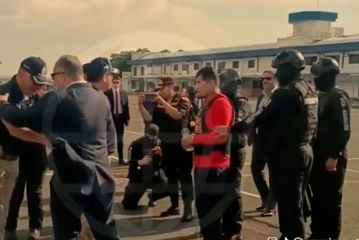 El ‘Monstruo’ llegó finalmente a la base aérea vestido con un uniforme rojo, con el cabello recortado y bajo una fuerte custodia. De inmediato, los agentes reforzaron su seguridad colocándole chaleco antibalas y casco táctico, con el objetivo de evitar cualquier tipo de atentado durante los minutos previos al embarque.
