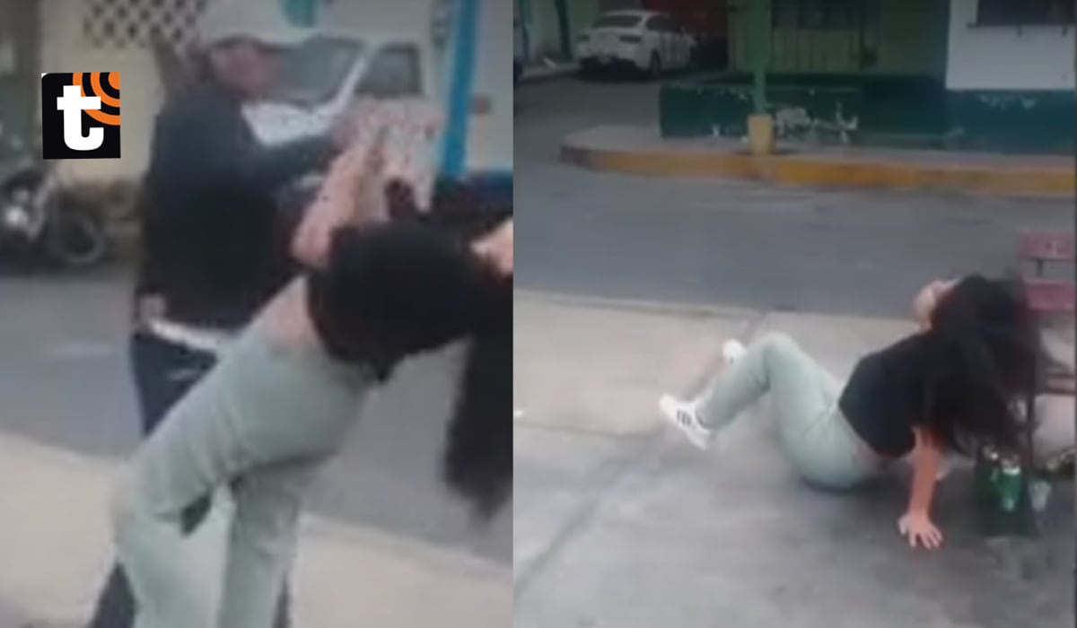 Mientras Leyla le hace gestos con las manos, Carlos la agarra por la cintura y vuelven a discutir. Carlos le tira un puñete en el mentón, empujándola al suelo. El joven que los acompaña incluso graba la agresión.