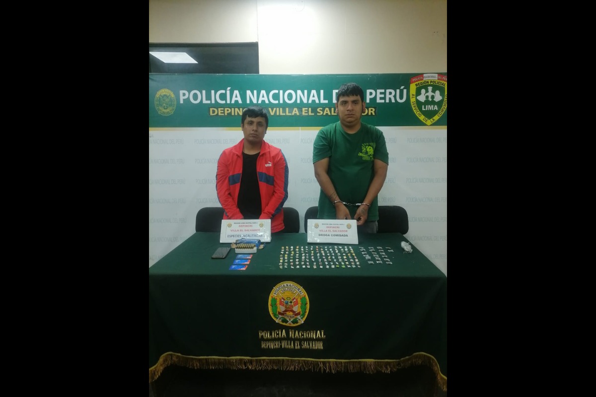 Detectives de Depincri Villa El Salvador atraparon a las 5 de la madrugada en avenida Bolívar, cerca del bar Perú Bravazo, a Jordy Guerrero Guido (29), ‘Jordy’, y José Jair Ashiro Gómez Arias (26), ‘negro’, en el mototaxi Bajaj de placa 5987-IA.