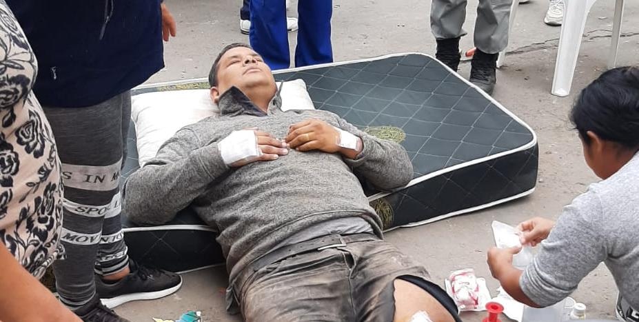 Miembros de serenazgo de Ate y paramédicos de la comuna se hicieron presentes y atendieron al policía. Luego fue trasladado al hospital de Vitarte. Su estado es delicado pues presenta fractura de tobillo derecho y contusiones en brazos y tórax.