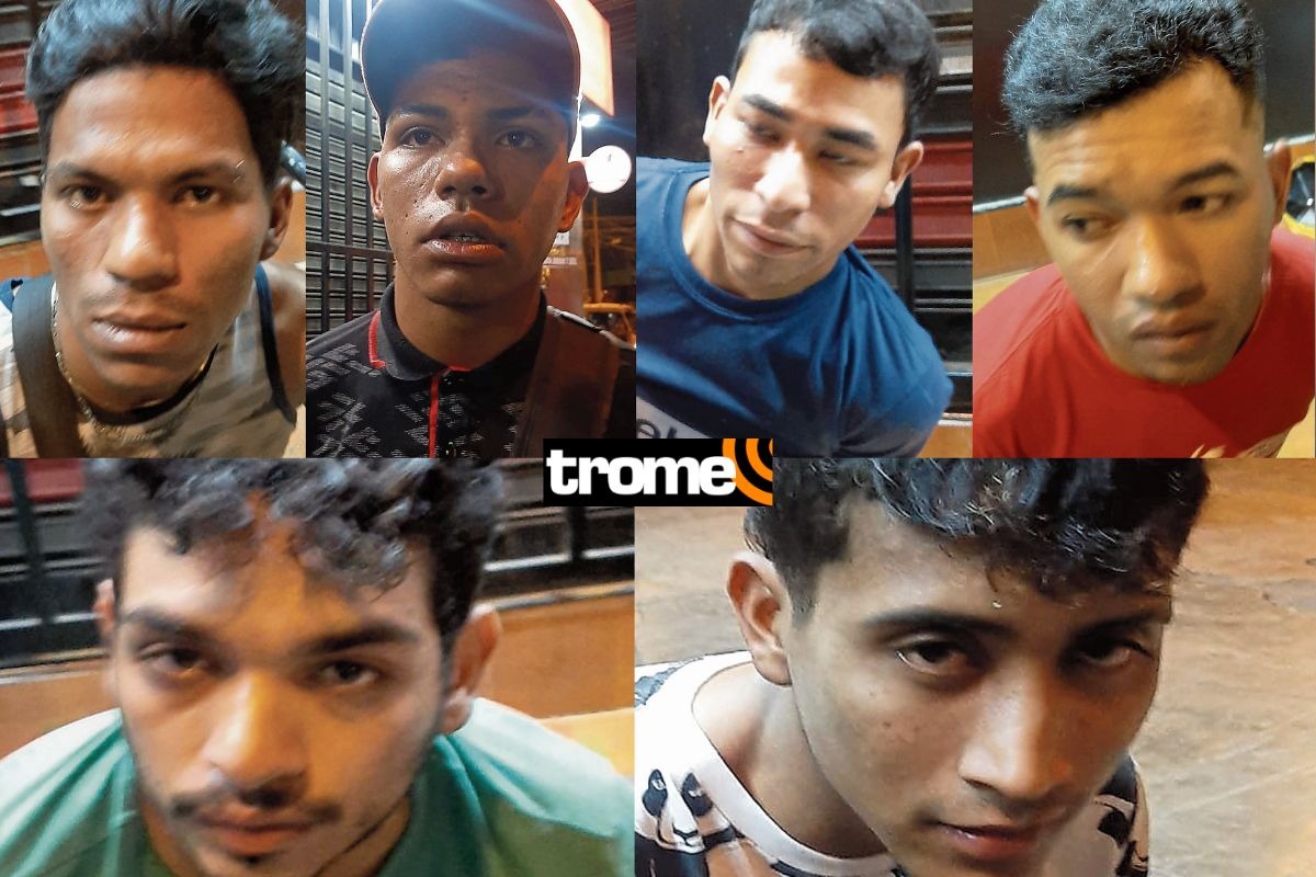 Todos con antecedentes policiales por diversos delitos. Se les halló gran cantidad de cartuchos de perdigones, 16 celulares robados y drogas.