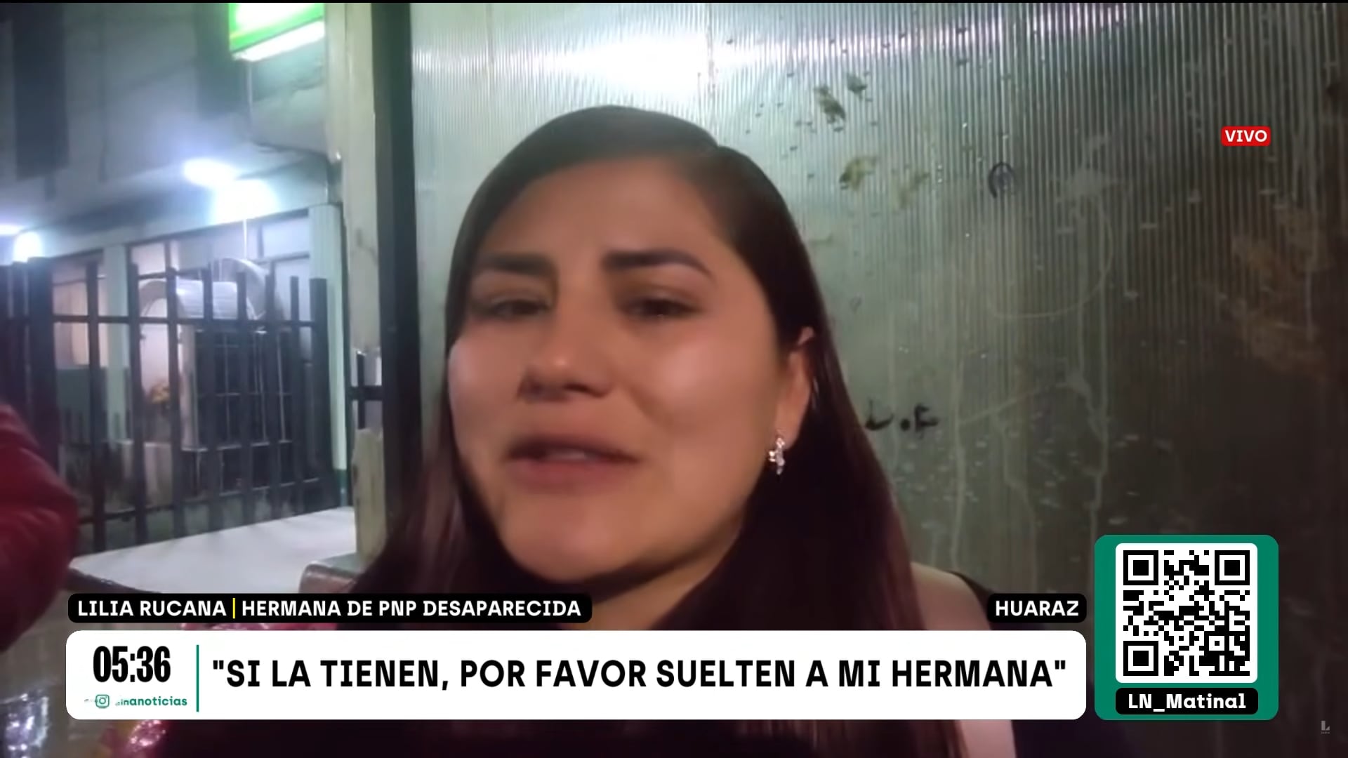 En declaraciones para las cámaras de un reportero de Latina, familiar de la policía desaparecida en Huaraz señala que el caso se maneja como posible conflicto sentimental o eventuales represalias vinculadas a intervenciones recientes en el ejercicio de sus funciones.