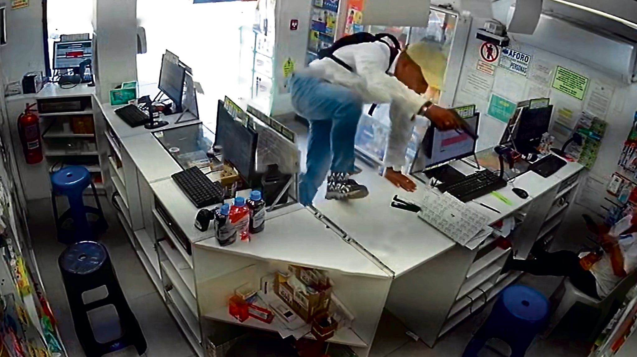 No conforme con la plata que se había llevado, una hora después ‘Jordy’ irrumpió en un local de Mifarma y volvió a saltar el mostrador.