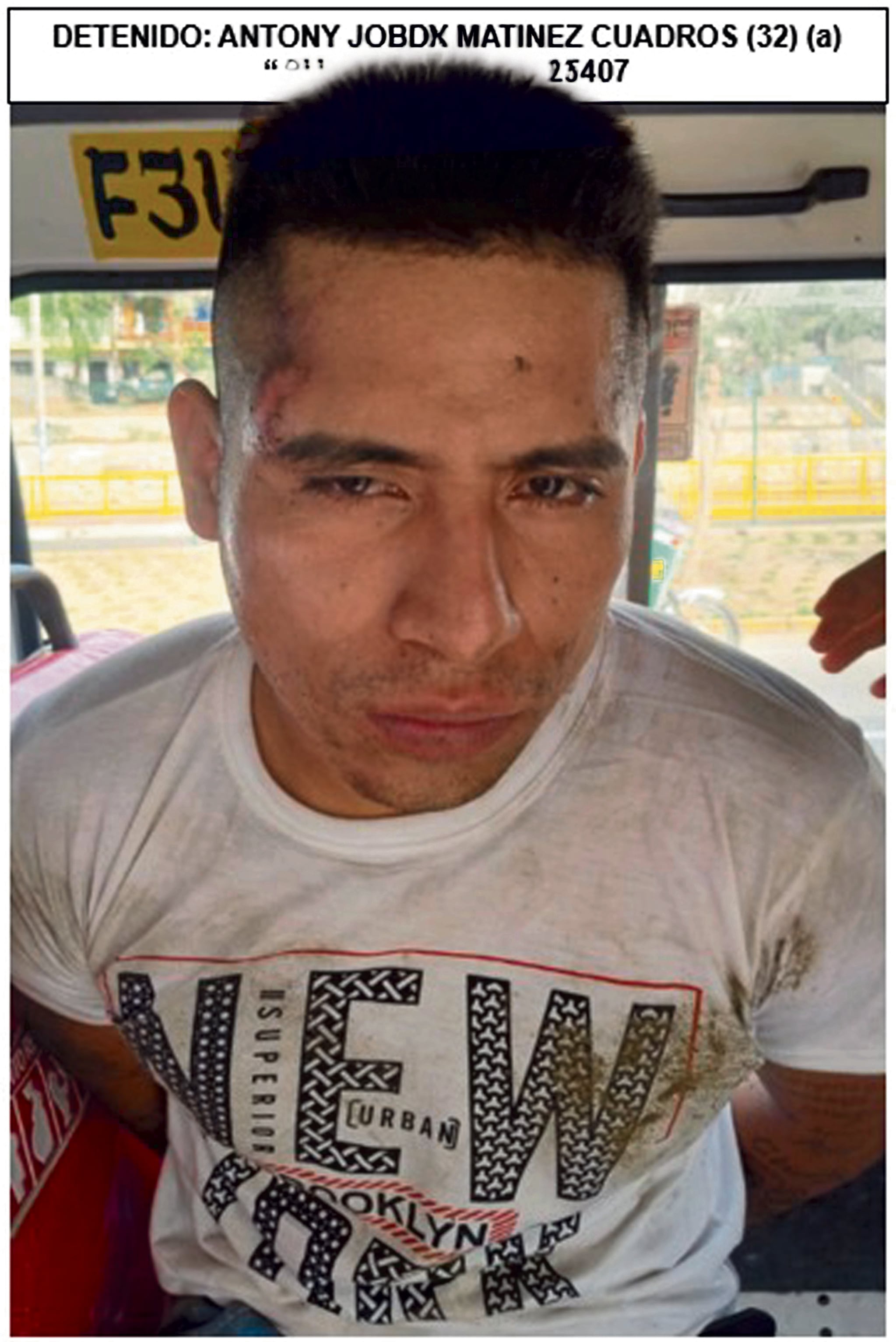 A la 1:58 de la tarde, Antony Jordy Martínez Cuadros (32), ‘Jordy’, cabecilla de la banda criminal llamada ‘Los Desalmados del Cono Norte’, con agilidad de gato saltó el mostrador de un local de Inkafarma.