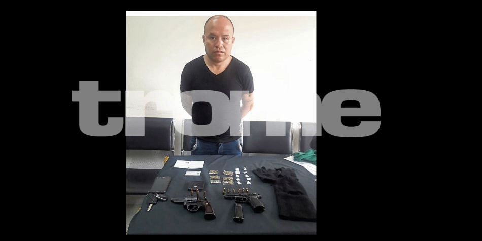 “Este vehículo fue robado y su verdadera matrícula es AXN-669. Al revisar debajo de los asientos se encontró una pistola con 15 balas, un revólver abastecido, un pasamontañas y un par de guantes negros que usaba para sus fechorías”, expresó un efectivo policial. (M. Rochabrum)