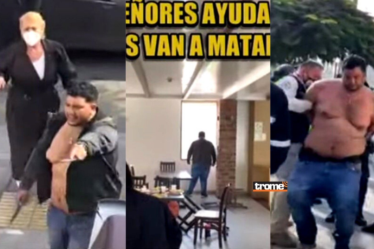DE TERROR. Así fueron los momentos que vivieron varios comensales que disfrutaban del Día del Pollo a la Brasa en la conocida pollería de La Molina, Don Tito, luego que un enfurecido joven ingresara al local de manera agresiva portando dos cuchillos.