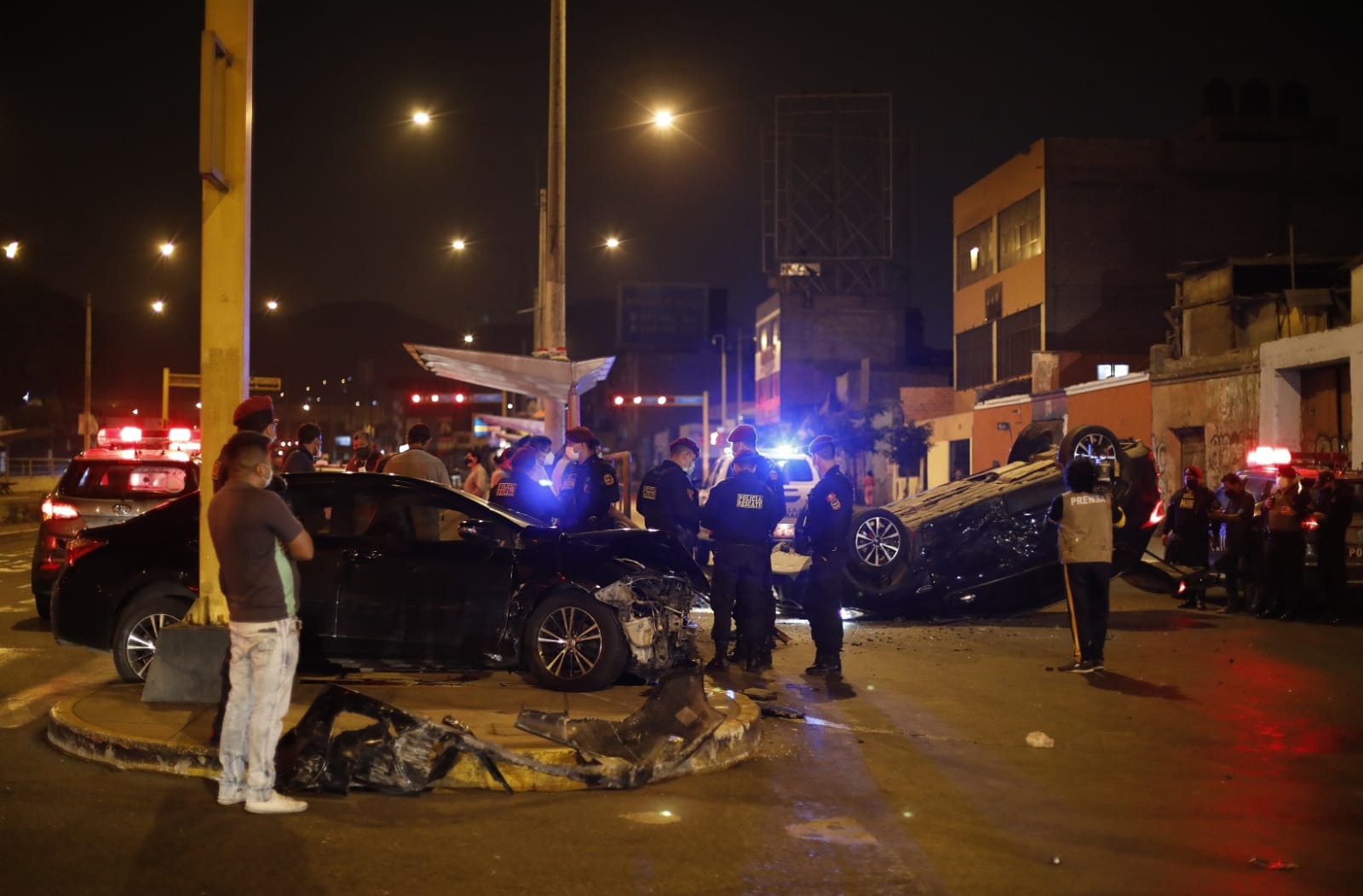 Pero en el cruce de la avenida Grau y Parinacochas, chocaron aparatosamente contra una camioneta oscura y producto de la terrible colisión, este último vehículo terminó volcado y con las llantas hacia arriba. Policías y bomberos llegaron al lugar y rescataron a los jóvenes. Ellos dijeron llamarse Angelo Dorado Rodríguez (19) y Jusepi Maguiña Torres (18), que resultaron solo con algunos golpes. Fueron detenidos por los policías del Escuadrón de Emergencias Sur 1 y conducidos a Depincri La Victoria.