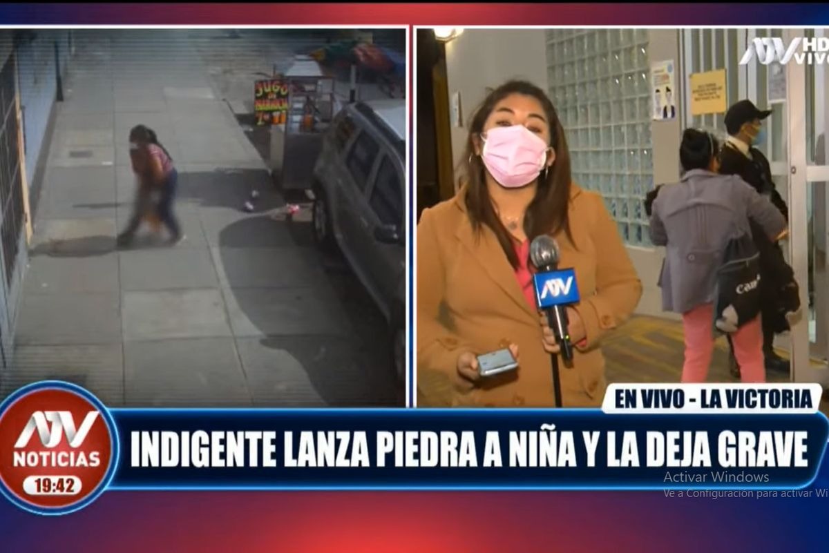 Un indigente atacó con una piedra a una niña de tres años que se encontraba en la cuadra 12 de la avenida Aviación, en La Victoria. El brutal hecho fue grabado por las cámaras de seguridad del municipio. La niña se encuentra muy grave, tiene el cráneo fracturado, entre otros daños. Advertencia: el video puede herir susceptibilidades.