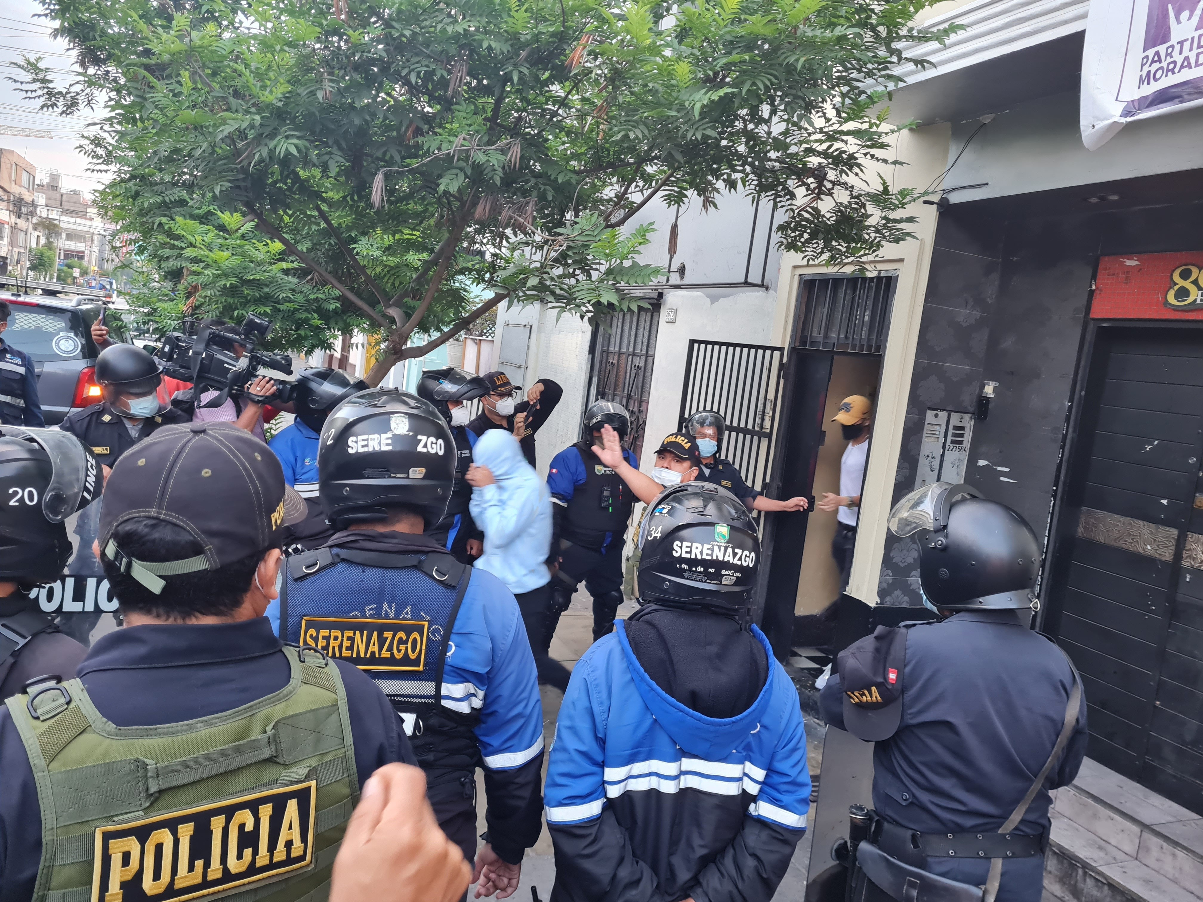Tras las diligencias en el recinto, los infractores, muchas de ellas mujeres, fueron saliendo del local, cubiertas con sábanas, y abordaron varios vehículos policiales para ser derivados a la comisaría de Lince, donde quedaron registrador y se le puso una multa.