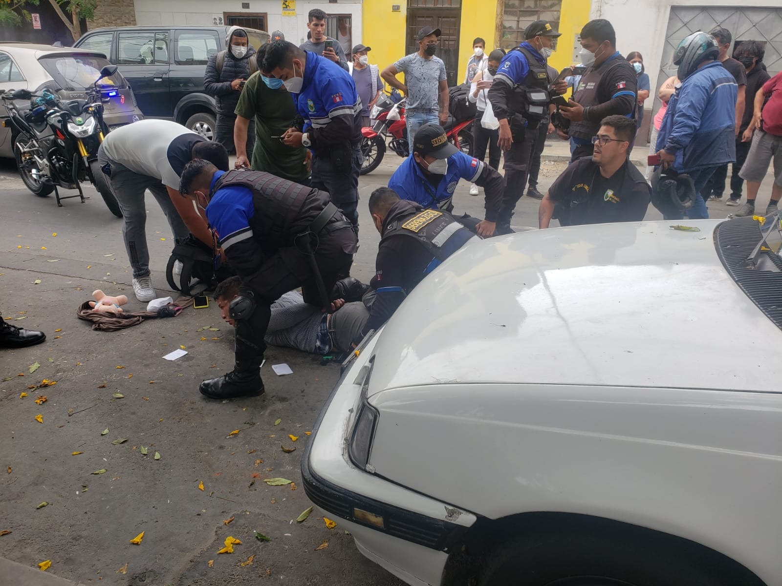 A bordo de una moto lineal nueva, dos presuntos delincuentes, que habrían robado un celular a una transeúnte, fueron atrapados en una persecución al chocar contra un auto, en Lince.
